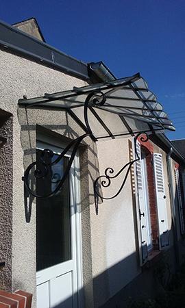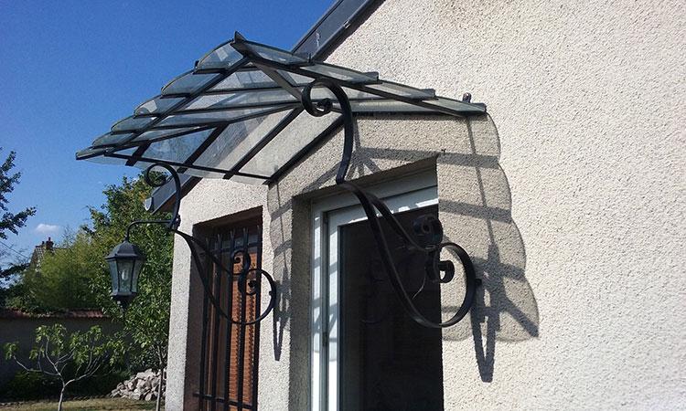 Marquise 3 pans avec vitrage et stadip 44-2, arrondi et biseauté