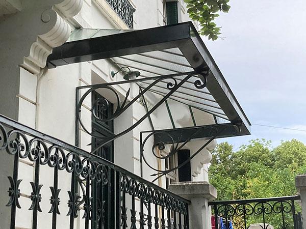 Intervention sur une marquise existante : découpe et pose des vitrages